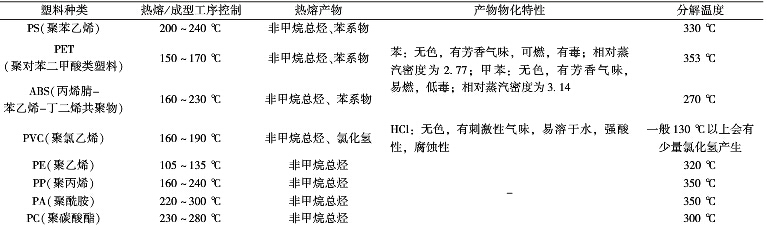 各類廢塑料生產(chǎn)控制參數(shù)和污染物產(chǎn)生情況